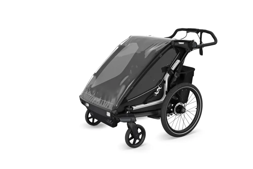 - Zaprojektowany na nowo system FlipWing umożliwia jeszcze łatwiejsze zmienianie trybu z przyczepki rowerowej na wózek spacerowy i na odwrót. Dodatkowo można obracać koła do góry i do dołu, gdy przyczepka jest zamocowana do roweru